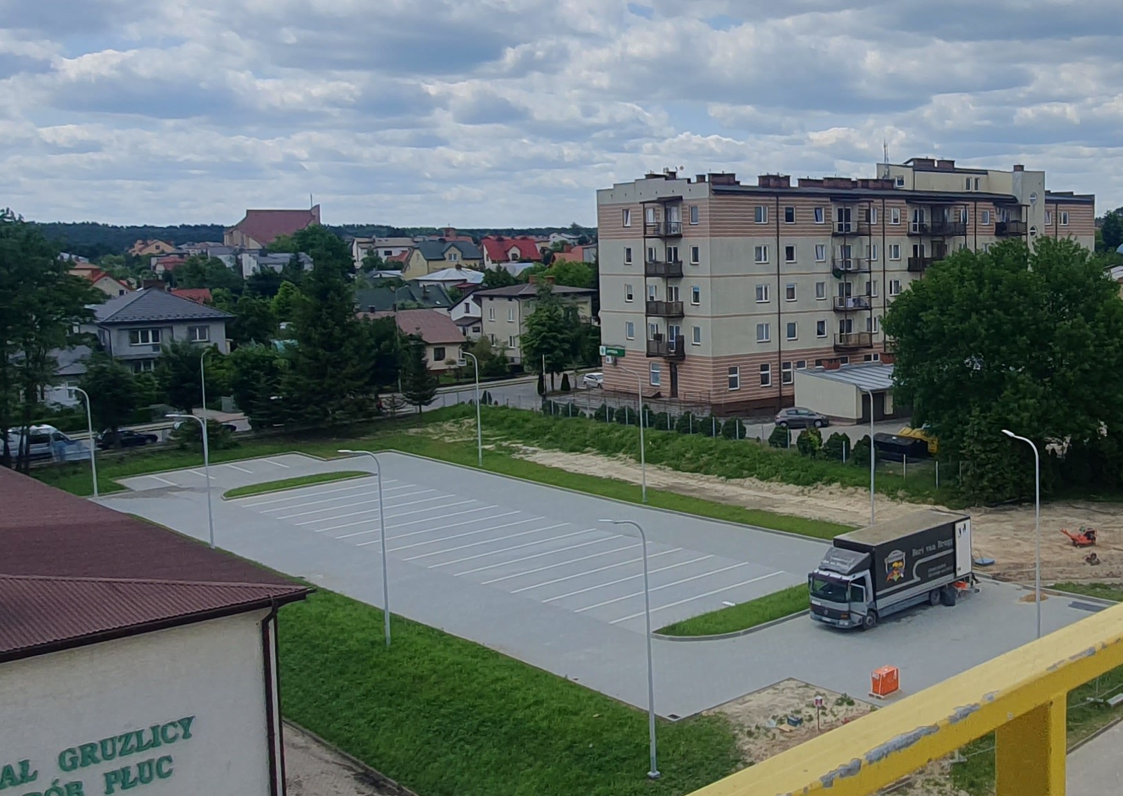 Jeśli chodzi o teren wokół, prace nad nowym parkingiem są już niemal zakończone. Nawierzchnia jest praktycznie gotowa, a cała przestrzeń została zagospodarowana, zapewniając komfortowy dojazd i miejsca parkingowe dla pacjentów i odwiedzających.