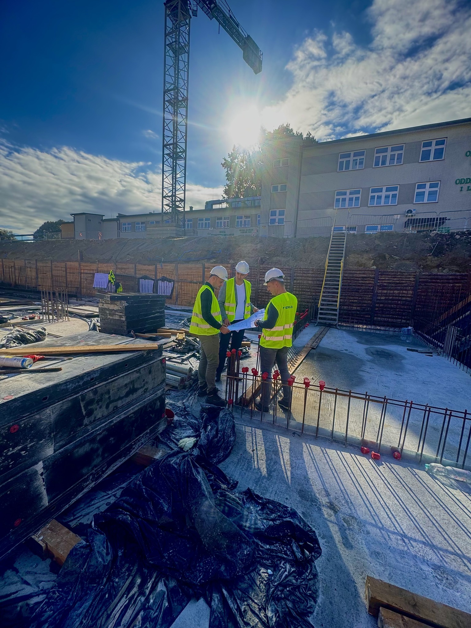 Prace przy budowie nowego budynku szpitala są na etapie realizacji konstrukcji części podpiwniczonej. Zakończono już wszystkie przygotowania, które obejmowały usunięcie drzew i krzewów znajdujących się na terenie budowy oraz przeniesiono sieci sanitarne i elektryczne, które kolidowały z projektem budynku szpitala. Kolejnym krokiem było zabezpieczenie wykopu, który zrealizowano przy użyciu tzw. ściany berlińskiej, co zapewnia stabilność ścian wykopu podczas dalszych prac.