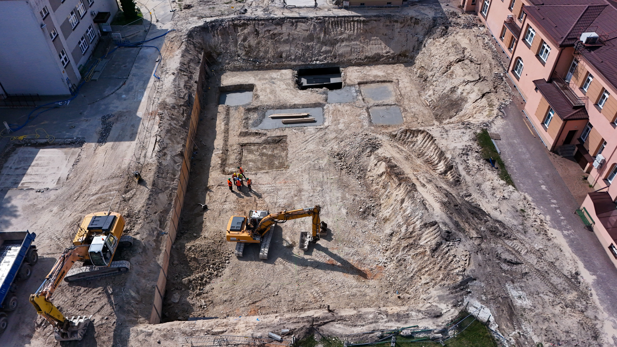 Roboty ziemne dotyczące budowy Centralnego Bloku Operacyjnego dobiegają końca - fotorelacja.