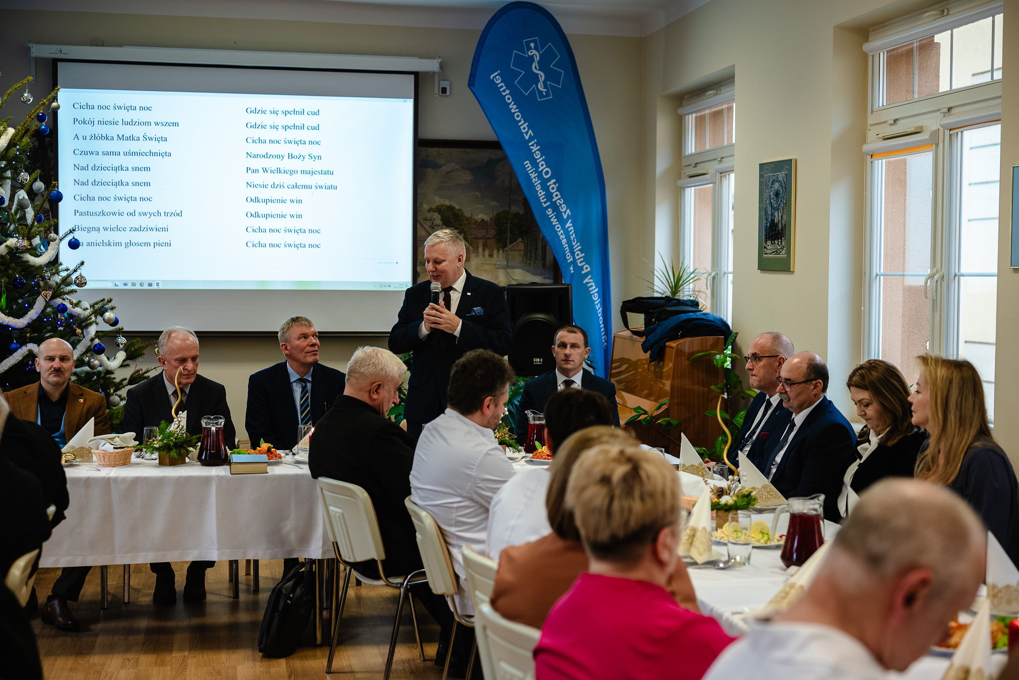 W serdecznej i miłej atmosferze w dniu 23.12.2024r. odbyło się tradycyjne spotkanie opłatkowe w naszym Szpitalu. Pracownicy oraz zaproszeni goście spotkali się, aby podzielić się opłatkiem, złożyć sobie świąteczne życzenia i wspólnie kolędować. Chwila refleksji pozwoliła oderwać się od codziennej pracy oraz obowiązków dnia codziennego.