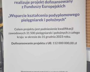 Naczelna Izba Pielęgniarek i Położnych realizuje projekt dofinansowany z Funduszy Europejskich pn. "Wsparcie kształcenia podyplomowego pielęgniarek i położnych", którego celem jest podnoszenie kwalifikacji zawodowych 31500 pielęgniarek i położnych z całego kraju.