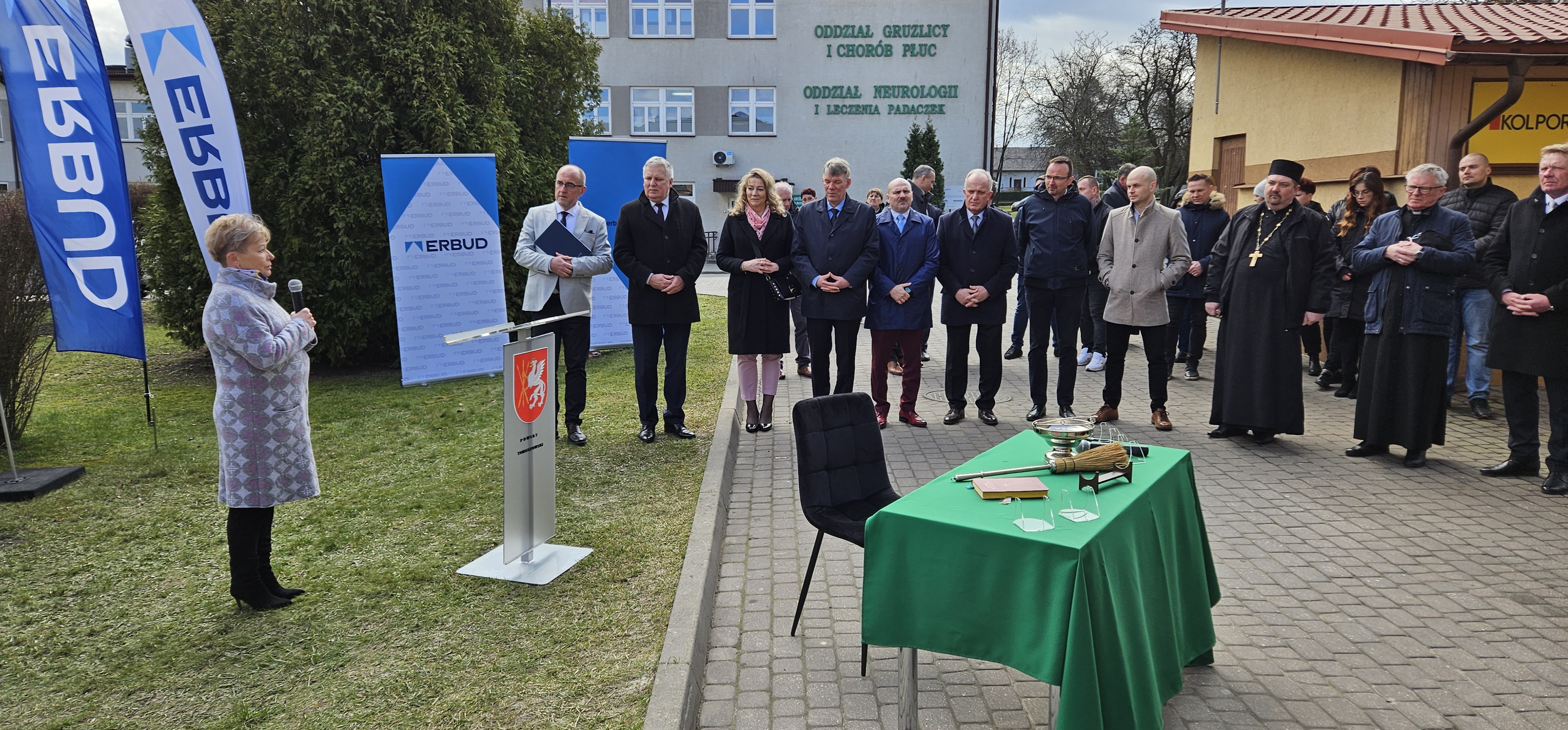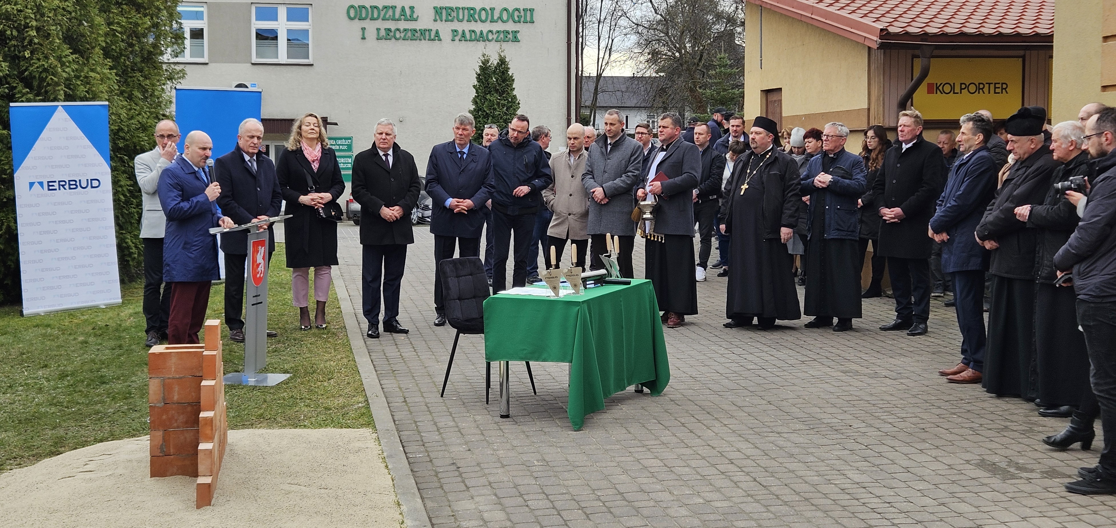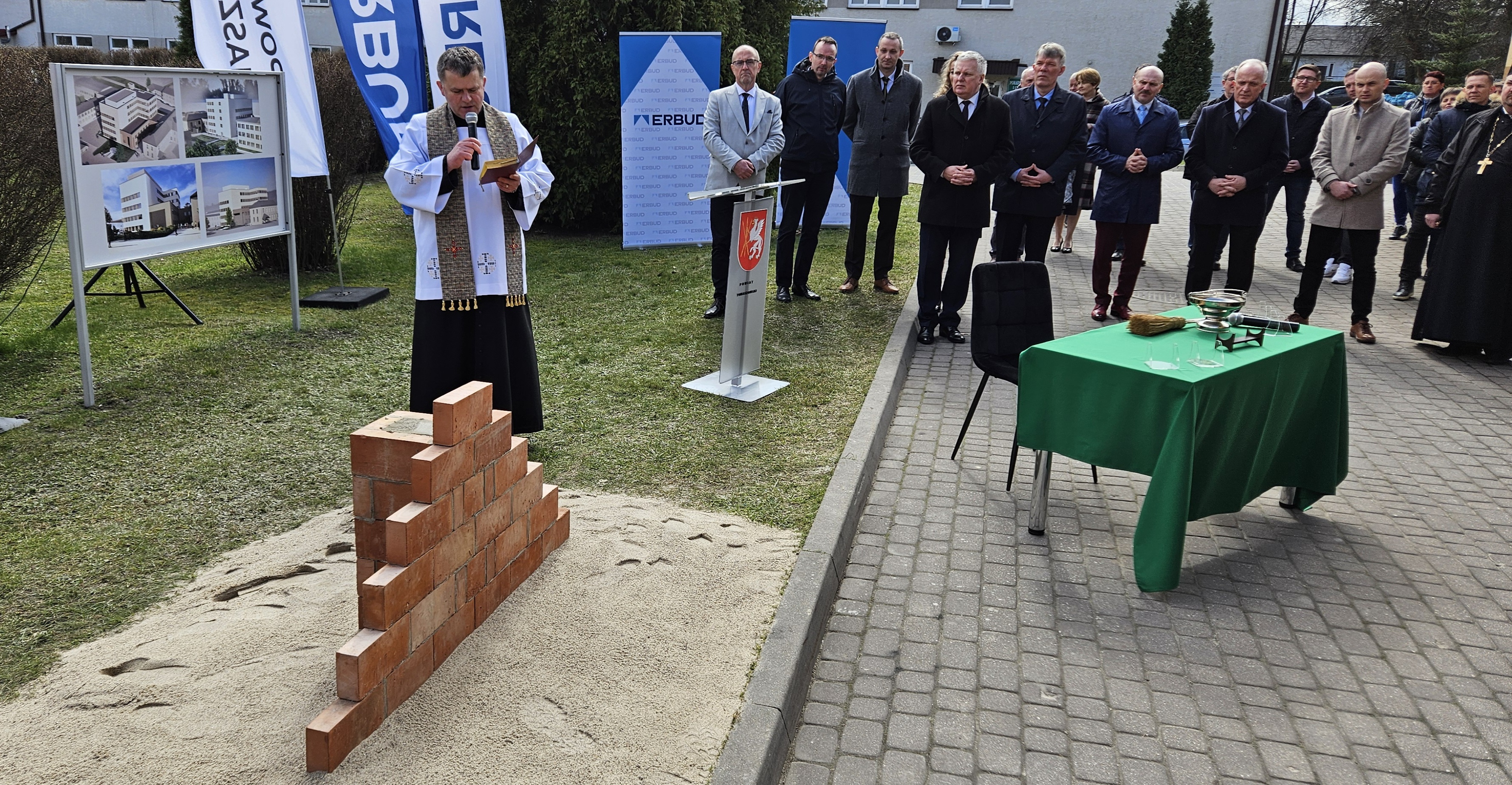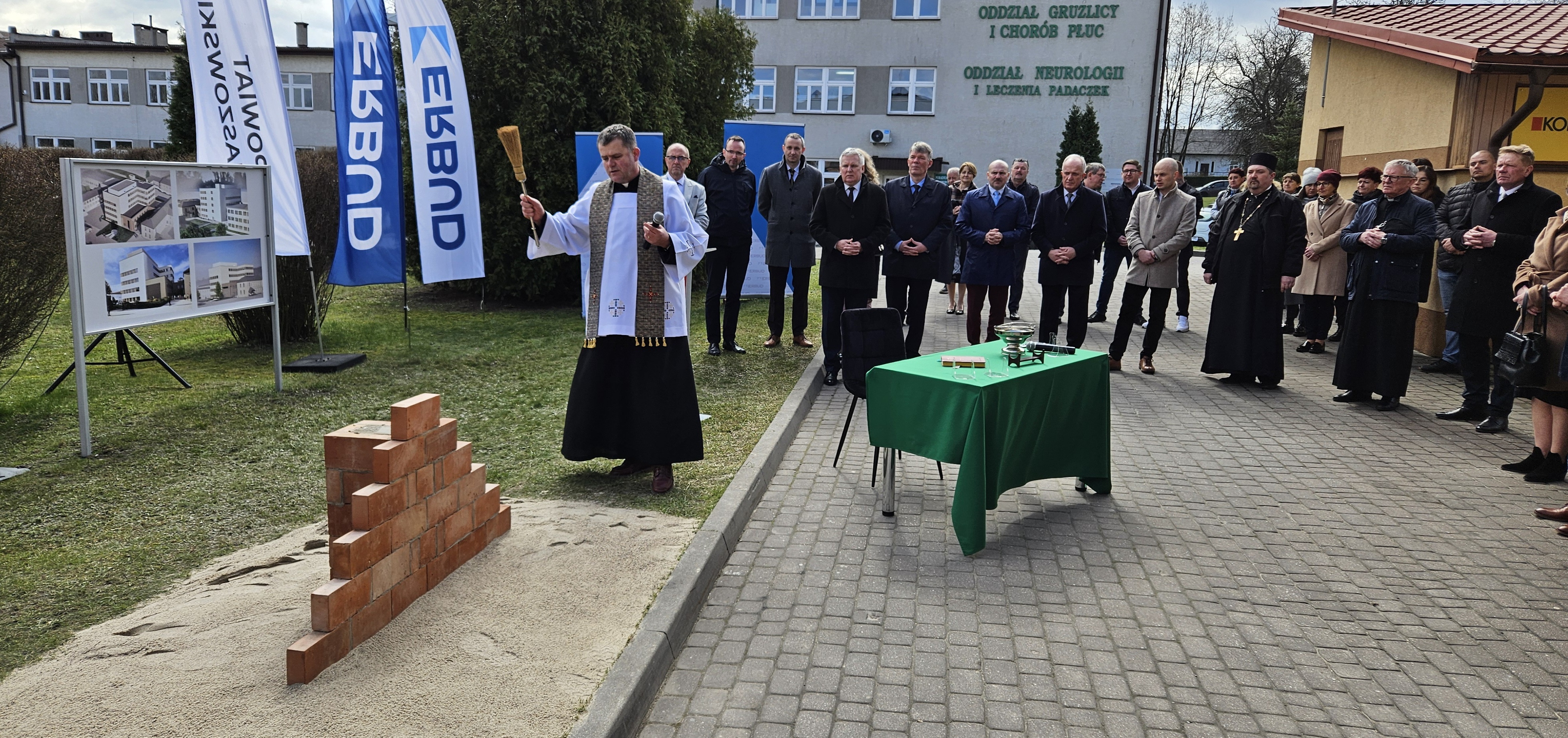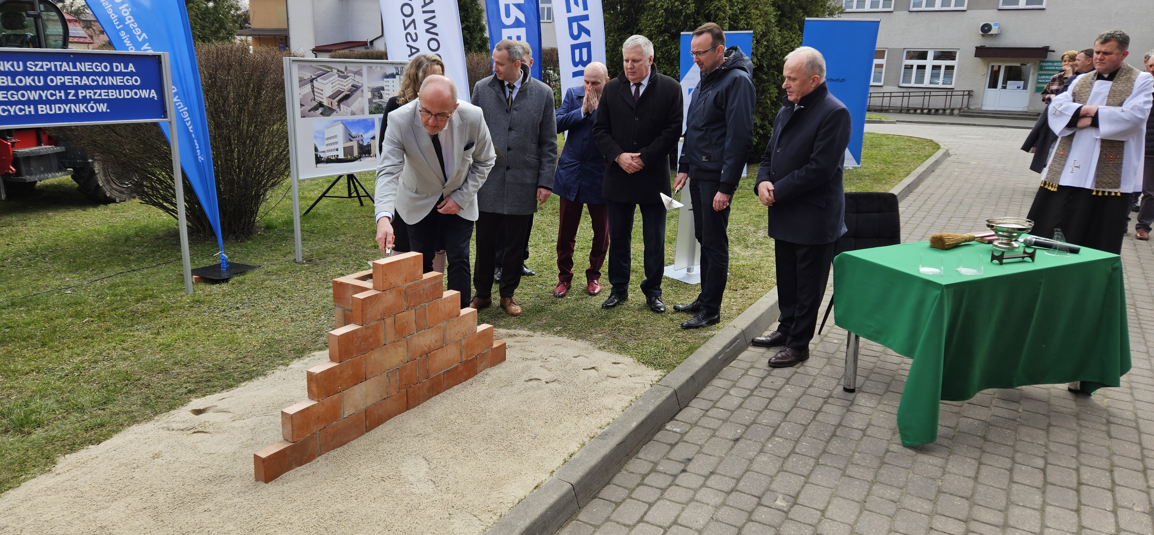 W dniu dzisiejszym wmurowano Kamień Węgielny pod „Budowę budynku szpitalnego dla centralnego bloku operacyjnego i oddziałów zabiegowych z przebudową istniejących budynków”.