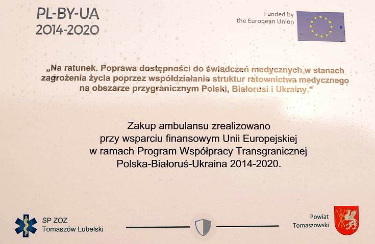Samodzielny Publiczny Zespół Opieki Zdrowotnej w Tomaszowie Lubelskim w ramach realizacji projektu pn. „Na ratunek. Poprawa dostępności do świadczeń medycznych w stanach zagrożenia życia poprzez współdziałanie struktur ratownictwa medycznego na obszarze przygranicznym Polski, Białorusi i Ukrainy” w oparciu o Umowę nr PBU.03.01.00-06-0142/17-00 zakupił dwa ambulanse typu S wraz ze specjalistycznym wyposażeniem oraz systemem do telekardiologii.